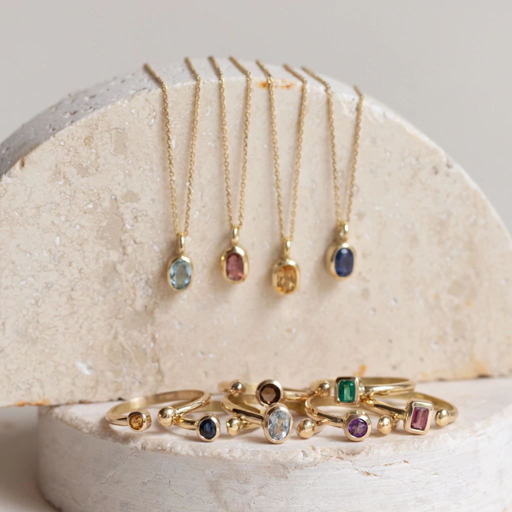 Anillo Ava de Oro amarillo 18k con un Citrino talla redonda engarzado a mano.