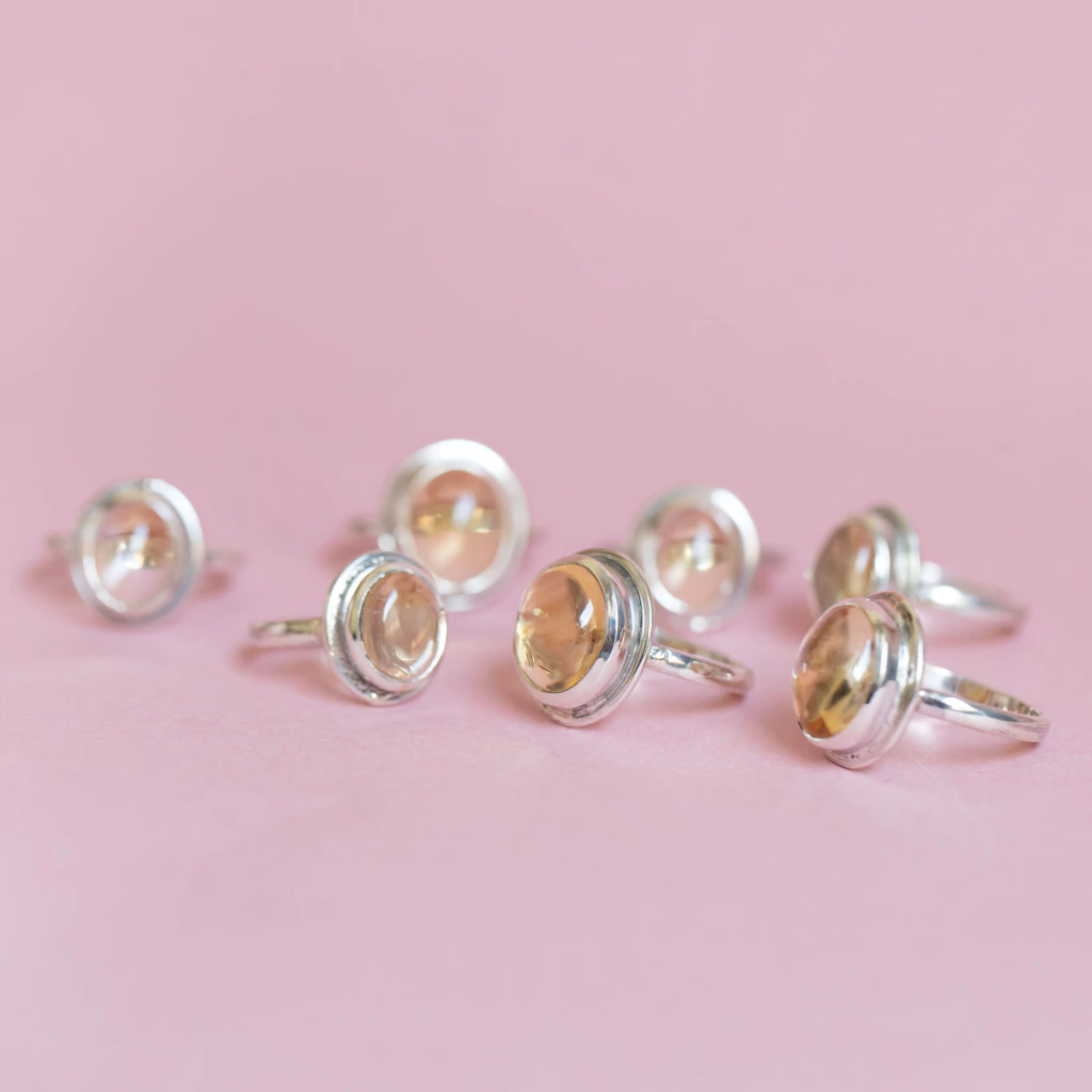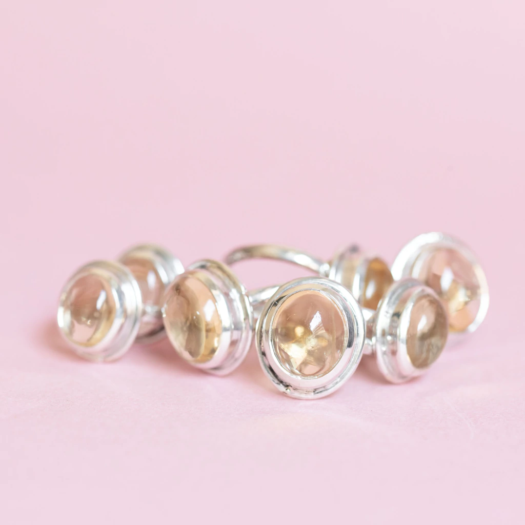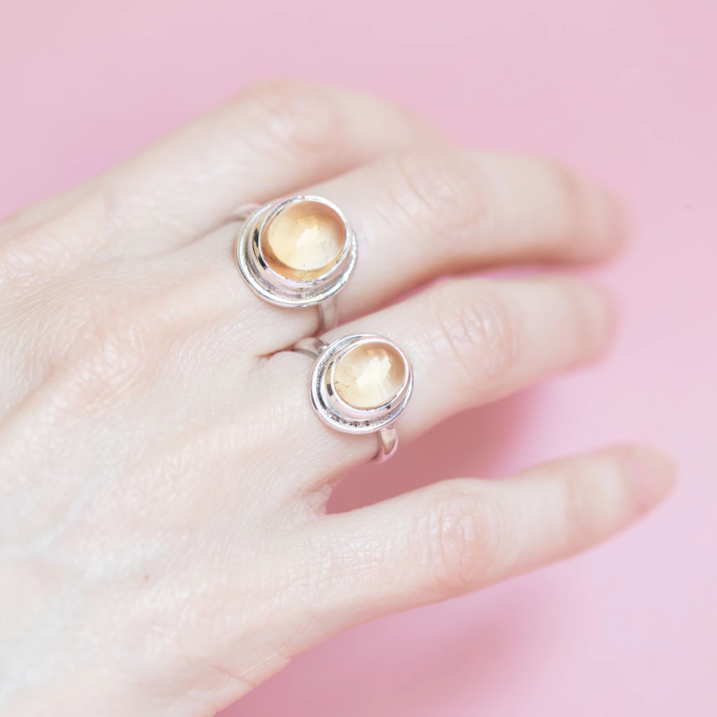 Anillos de Plata 925 con Citrino cabouchón engarzado a mano.