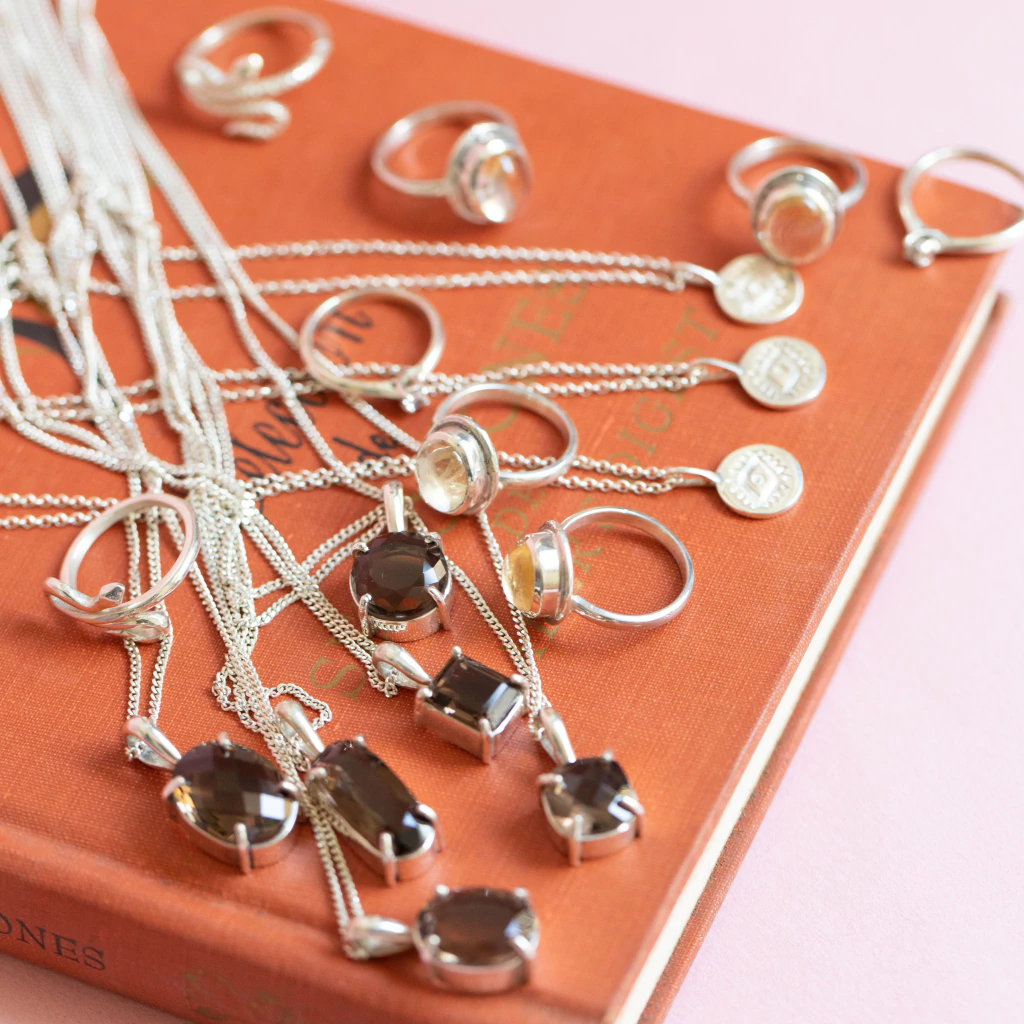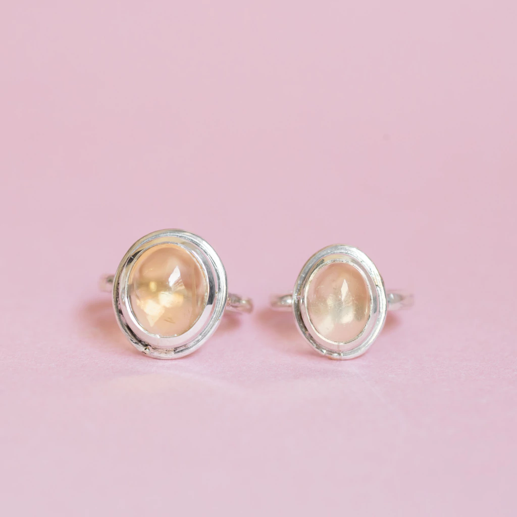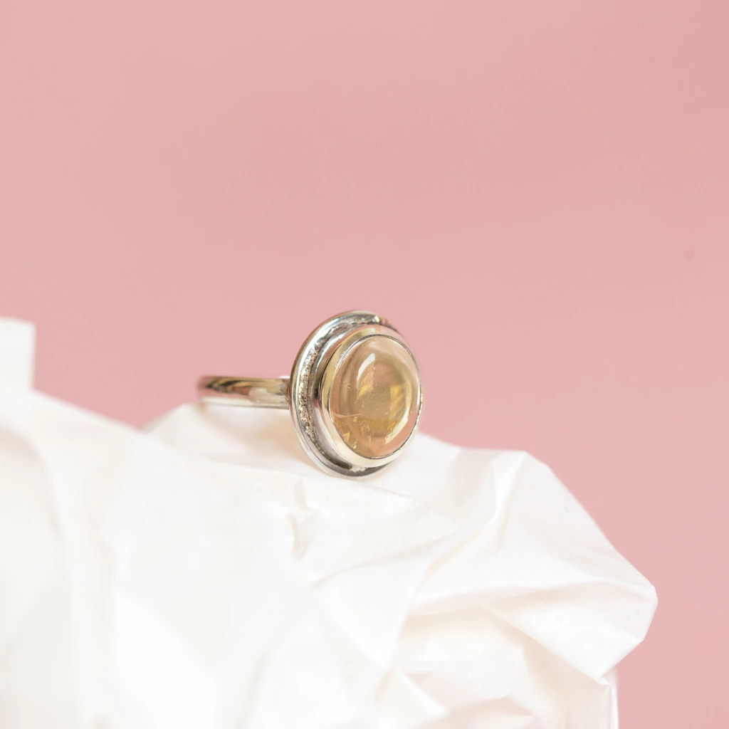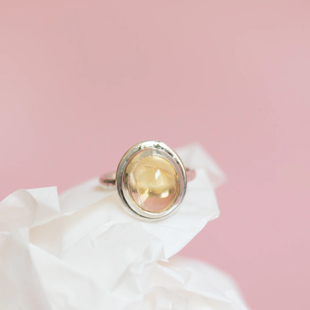 Anillos de Plata 925 con Citrino cabouchón engarzado a mano.