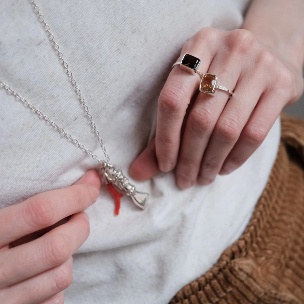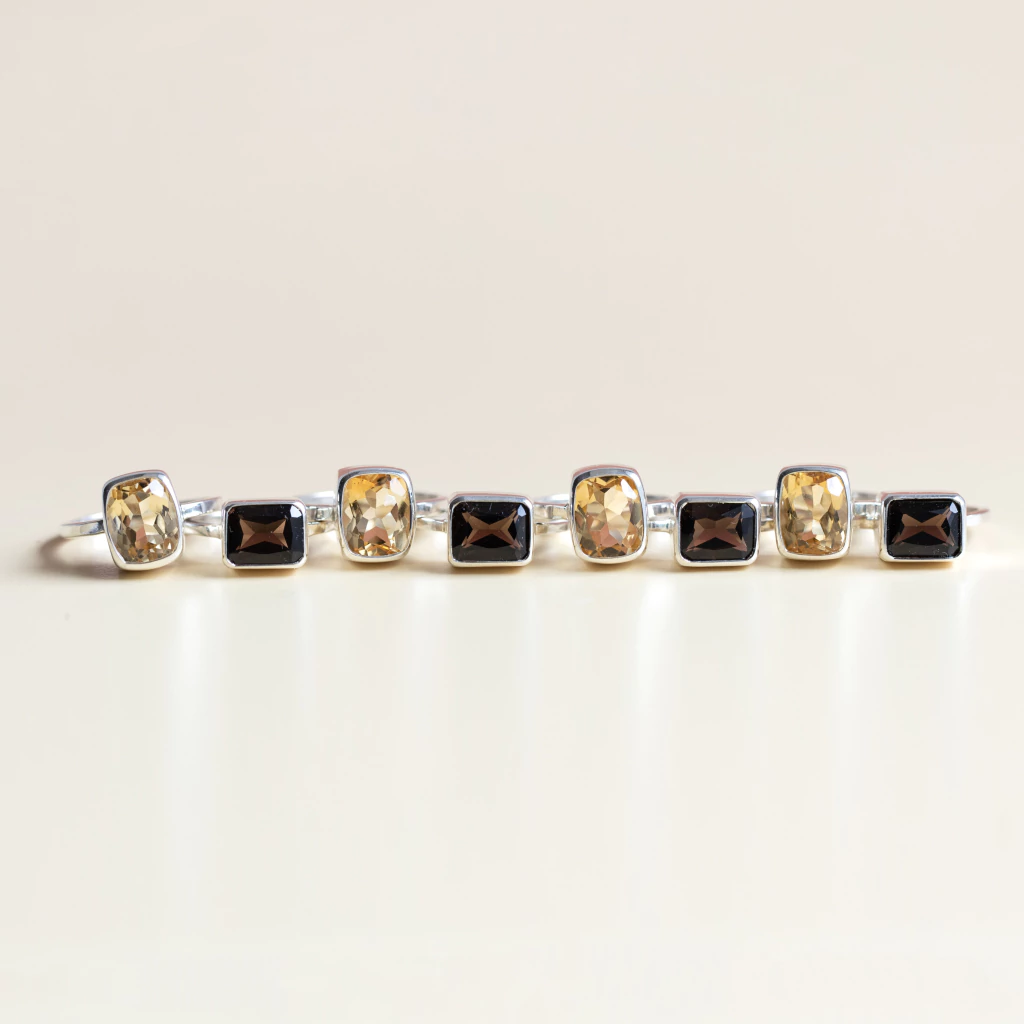 Anillos de Plata 925 con Cuarzo fumé facetado, engarzado a mano.