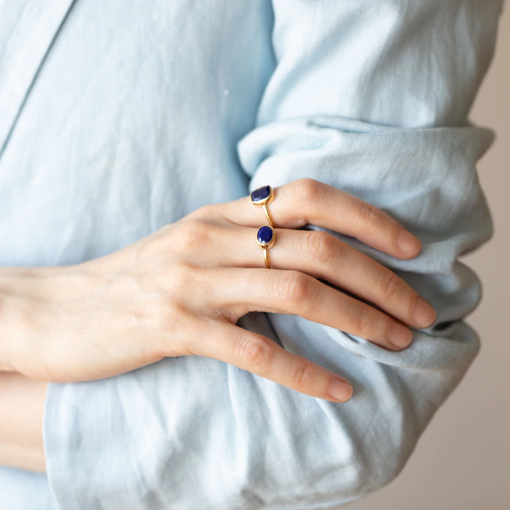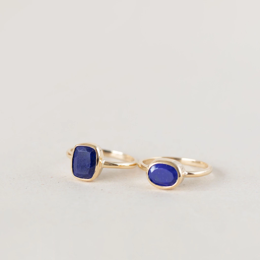 Anillo de oro amarillo 18k con un precioso Lapislázulo de talla oval engarzado a mano.