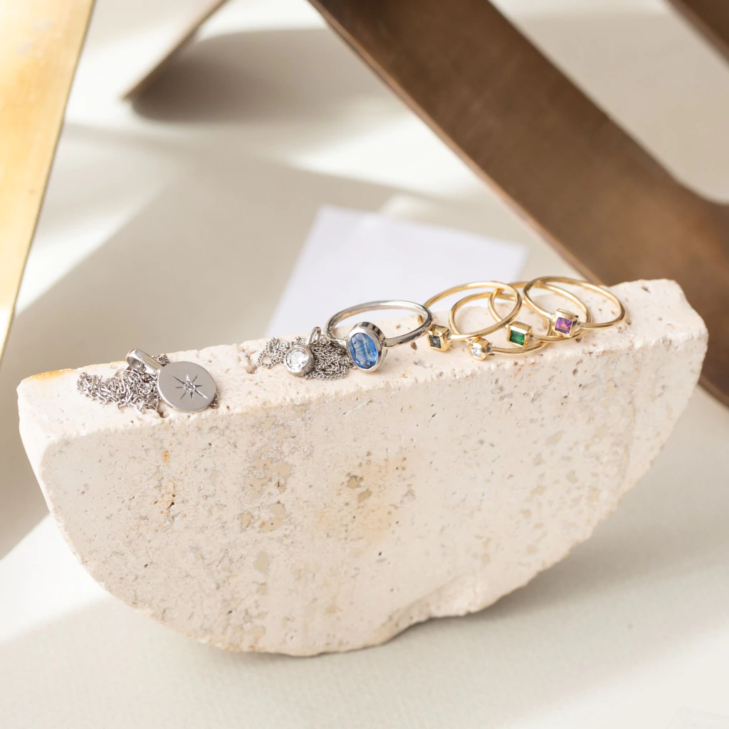 El cuerpo del anillo está martelado, lo que le suma un hermoso brillo extra.