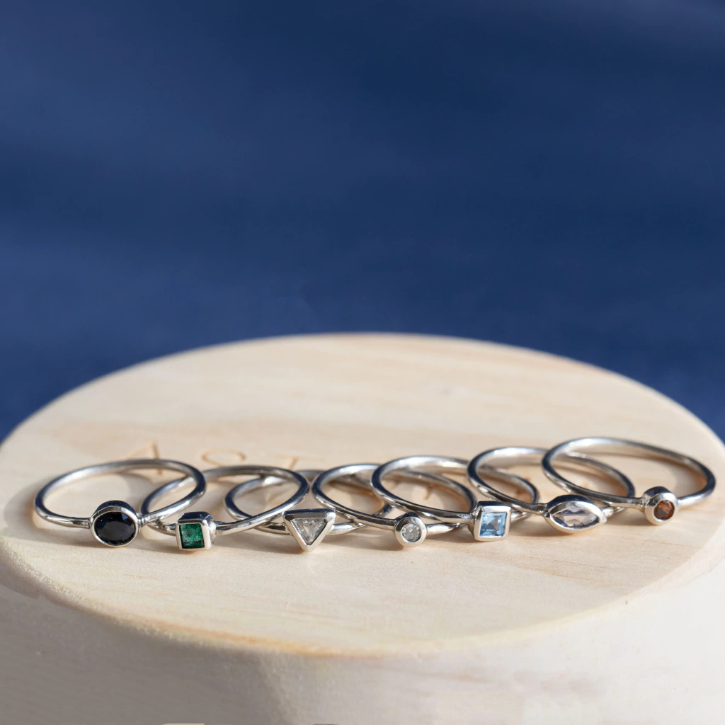 Anillo de platino con un Cuarzo mandarina talla redonda engarzado a mano.
