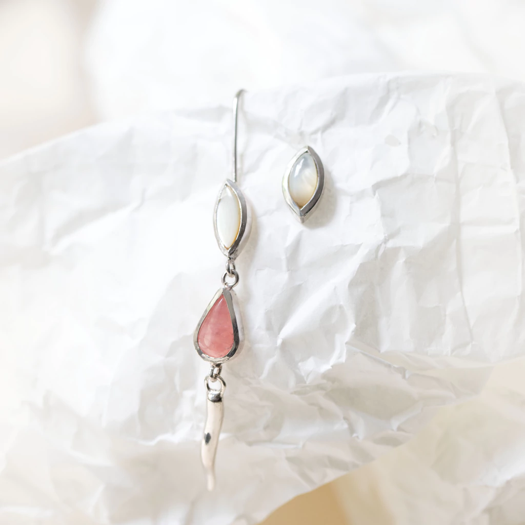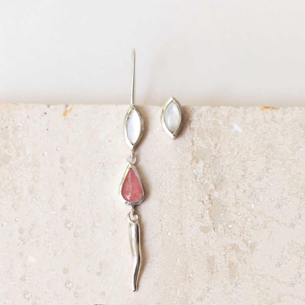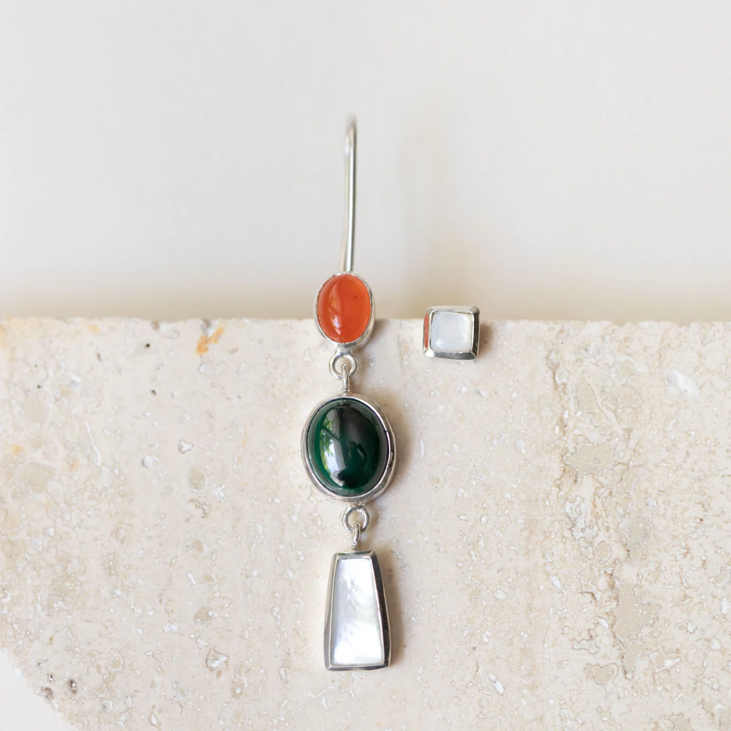 Par de aros irregulares de Plata 925, con piedras naturales de diferemte tipo, tamaño y talla.