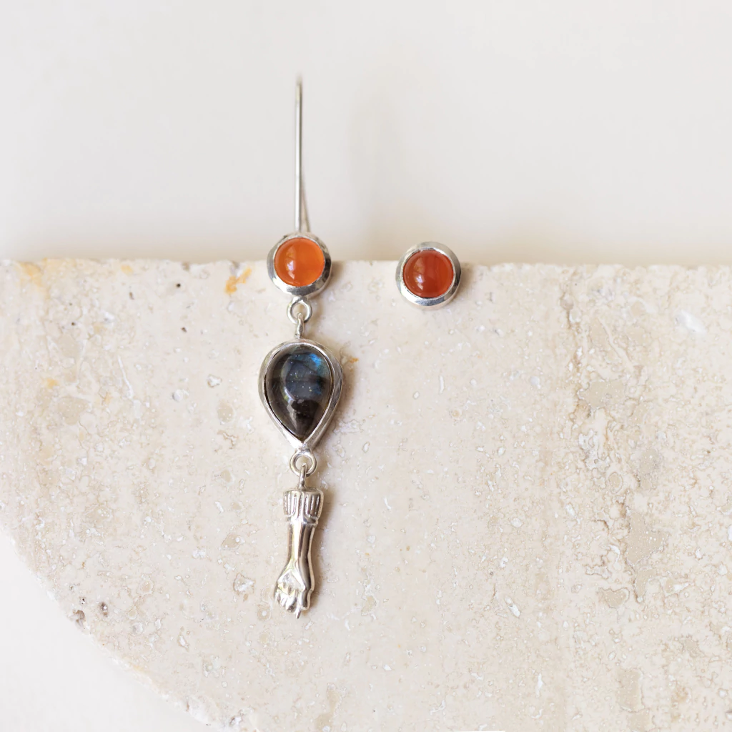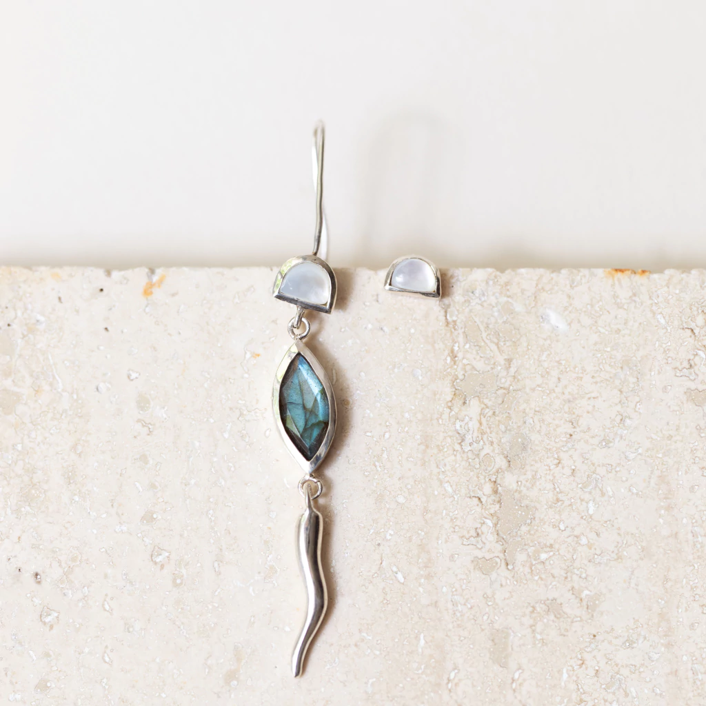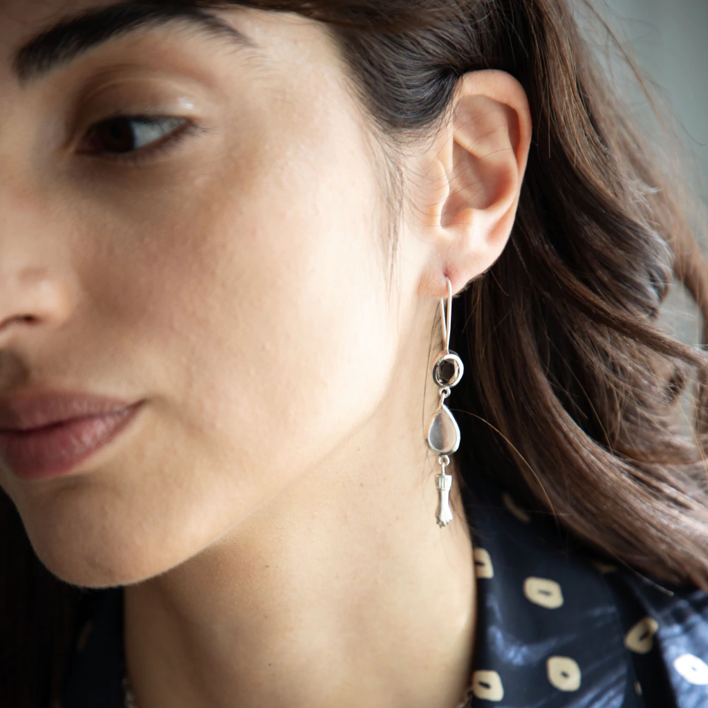 Par de aros irregulares de Plata 925, con piedras naturales de diferemte tipo, tamaño y talla.