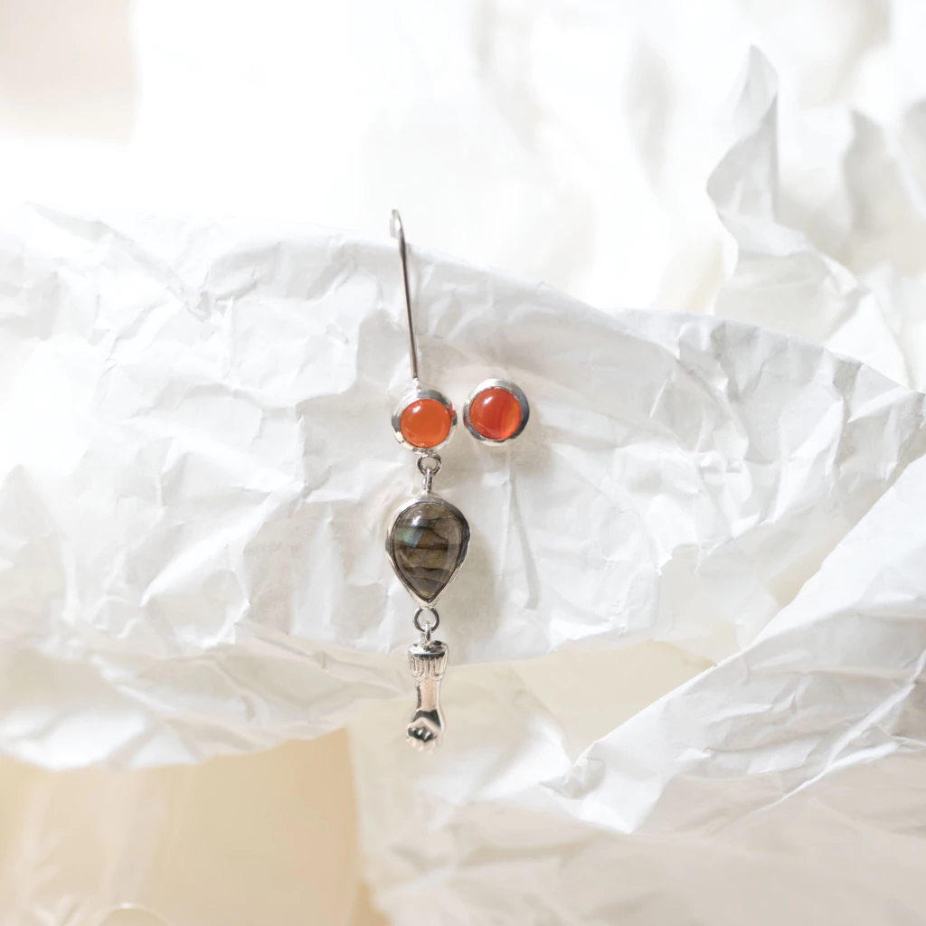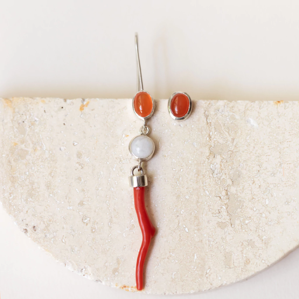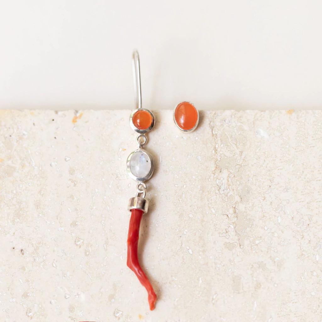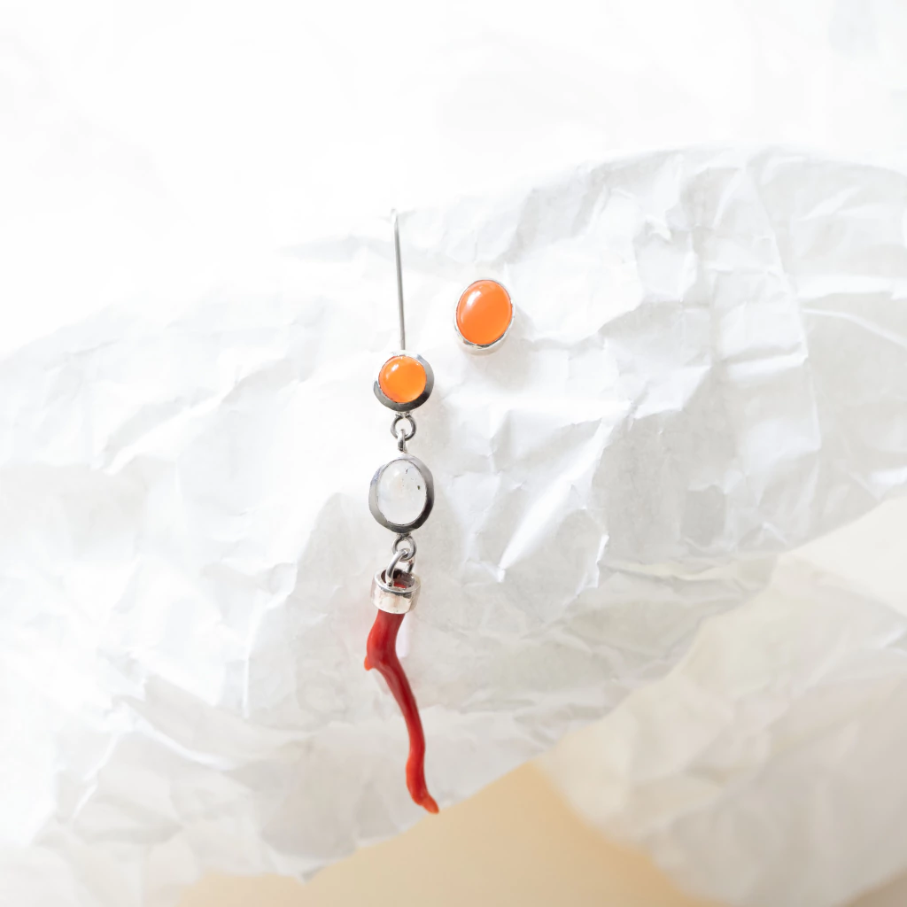 Agata cornalina redonda, Piedra de la luna y Coral.