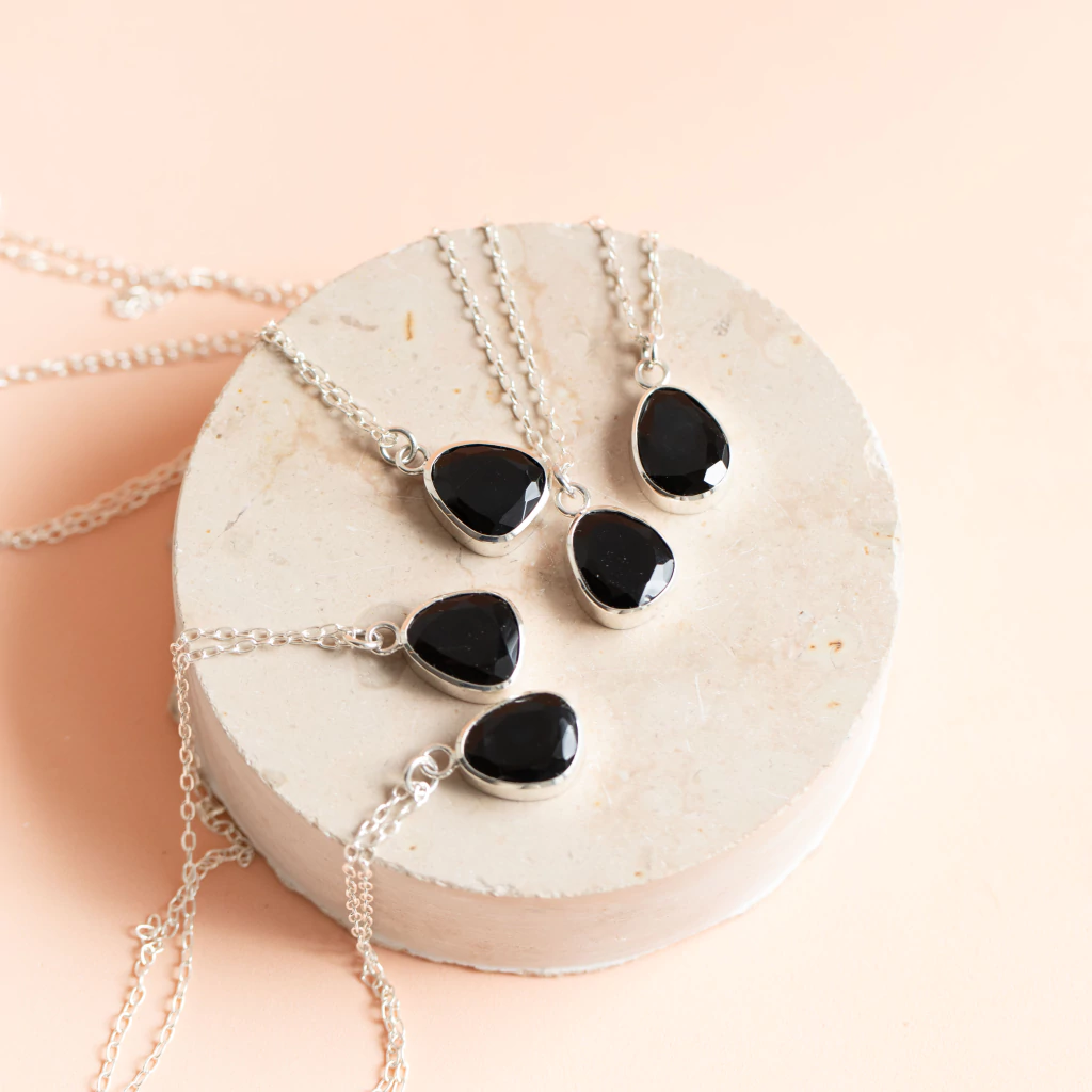 Collar de Plata 925 con Onix negro facetado, engarzado a mano