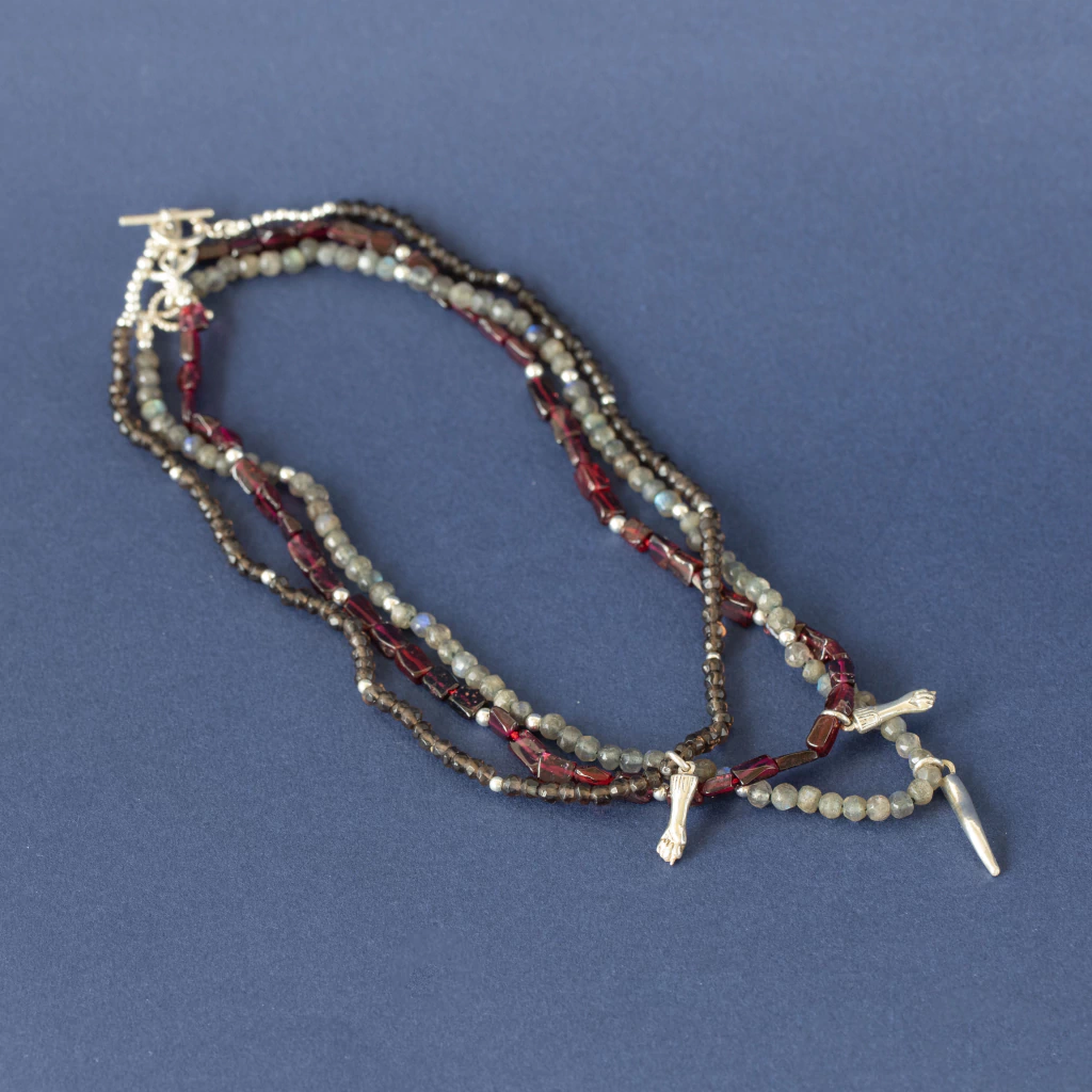 Collar de Plata 925 con cuentas de Cuarzo fumé