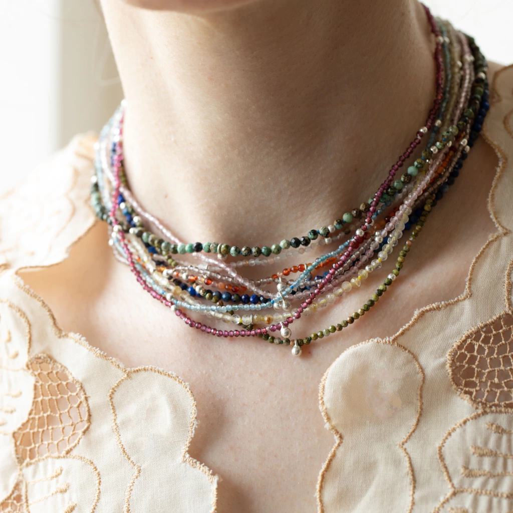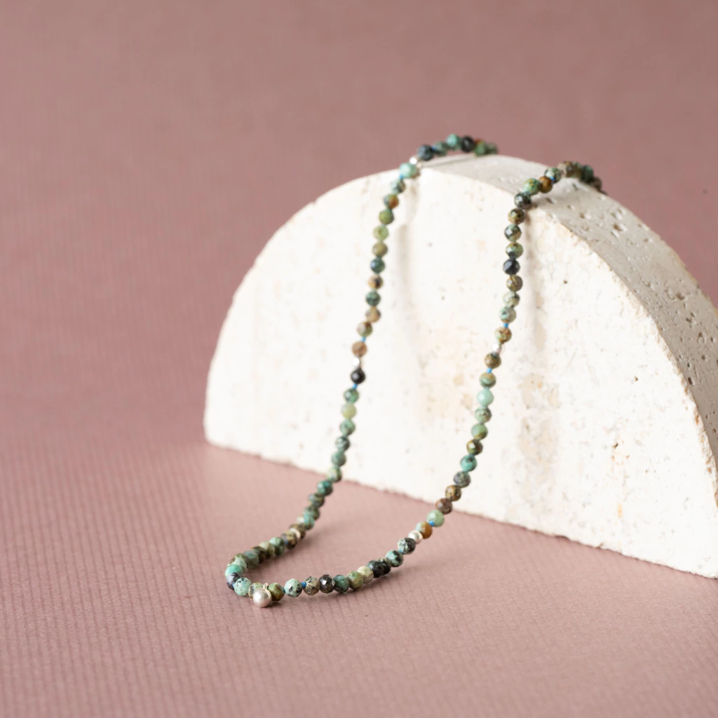 Collar de plata 925 con pequeñas cuentas de Turquesas tibetanas.