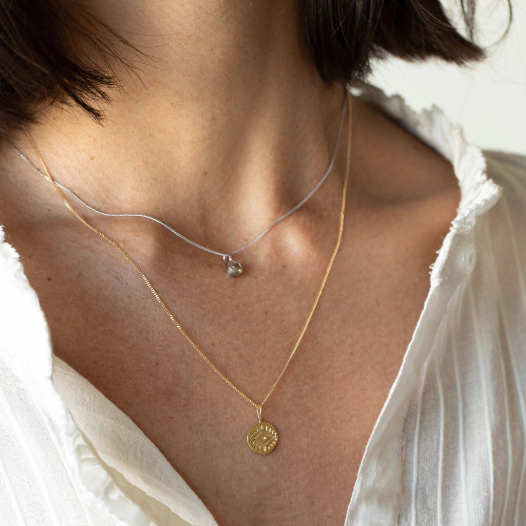 Collar de Oro amarillo 18k con un ojo protector grabado a mano.