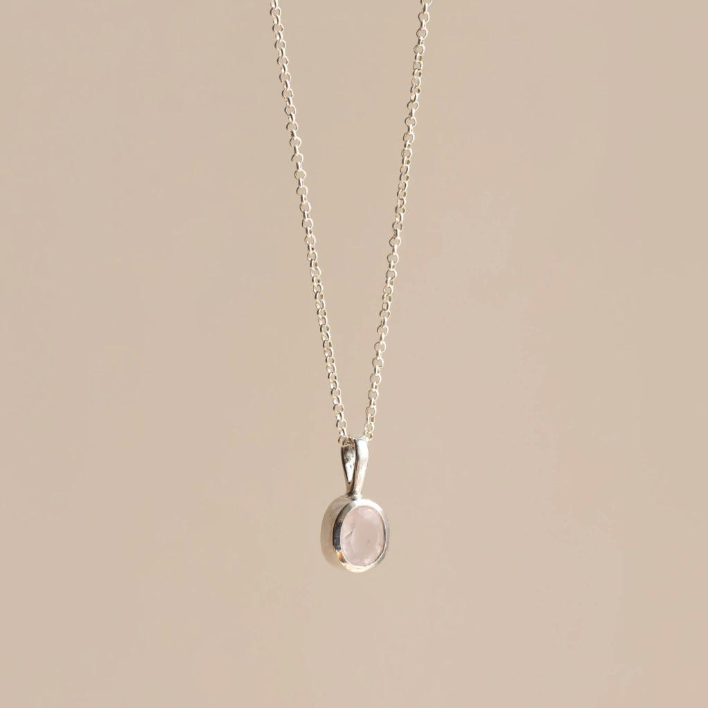 Collares de Plata 925 con Cuarzo rosa facetado engarzado a mano.