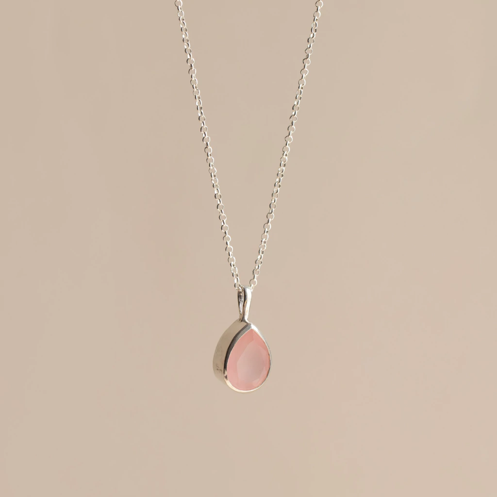 Collares de Plata 925 con Cuarzo rosa facetado engarzado a mano.