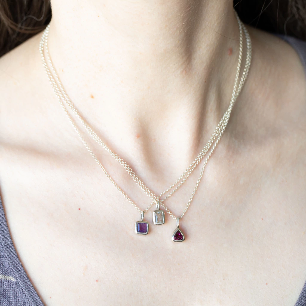 Collares de Plata 925 con una piedra natural engarzada a mano.
